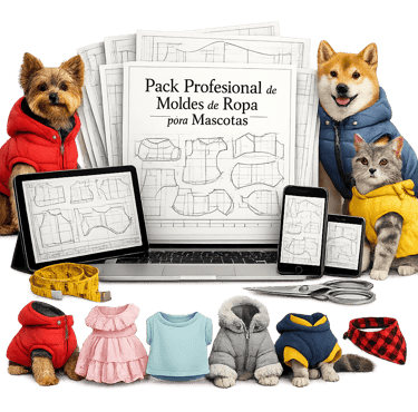El Pack de Moldes de Ropa para Mascotas, con diseños exclusivos listos para imprimir y crear prendas irresistibles para perros y gatos.